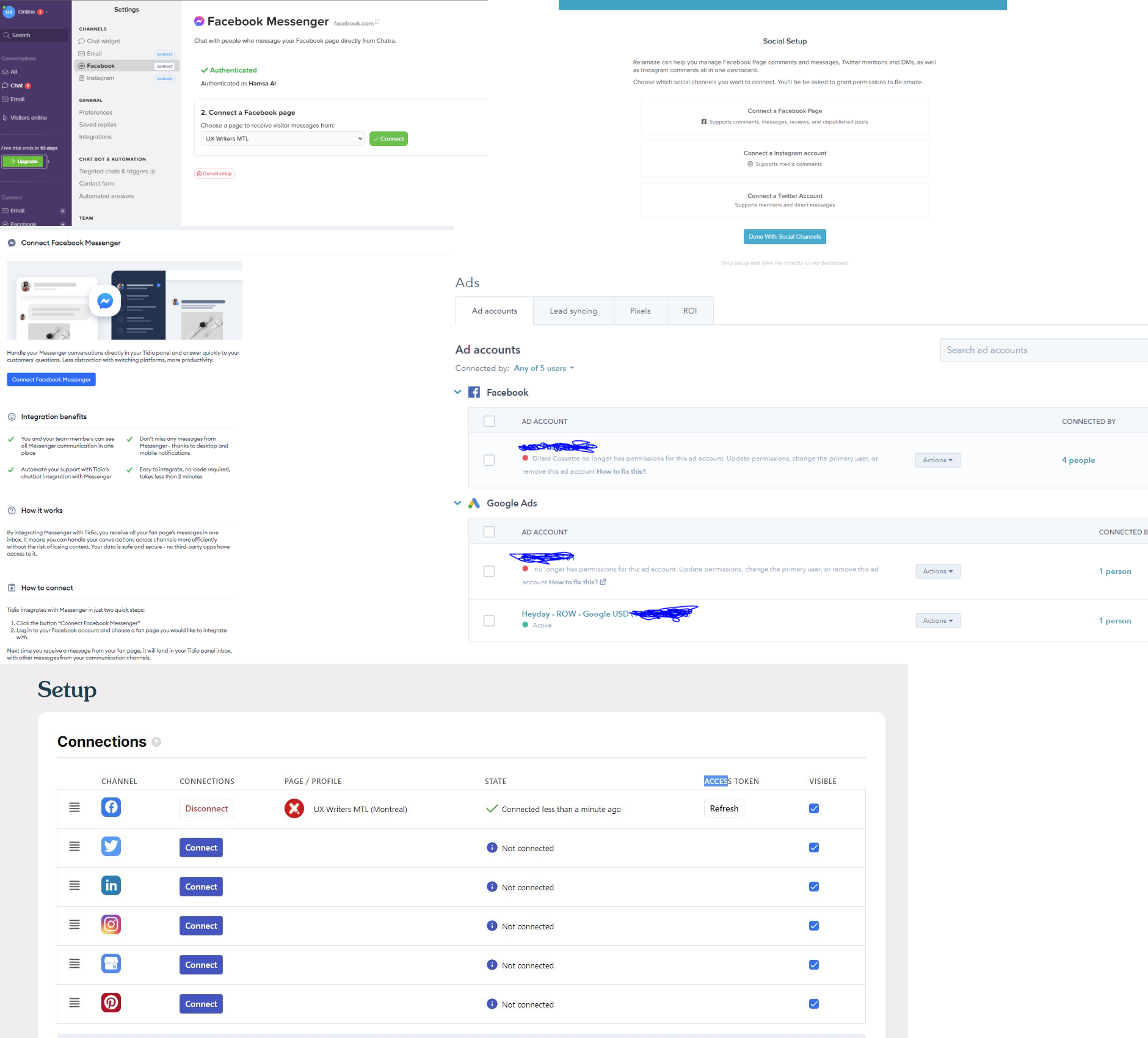 Integrating the chatbot with social accounts had a lot of friction because users relied on customer success managers to connect their social channels to the chatbot.